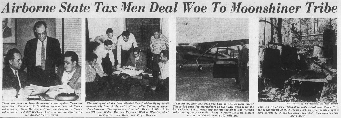 Airborne State Tax Men Deal Woe To Moonshiner Tribe - Nashville Banner: Tuesday, April 3, 1956, Page 8