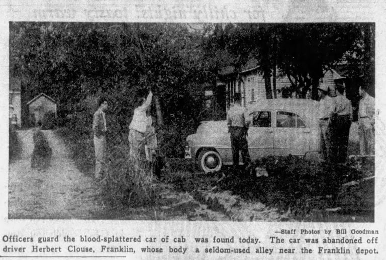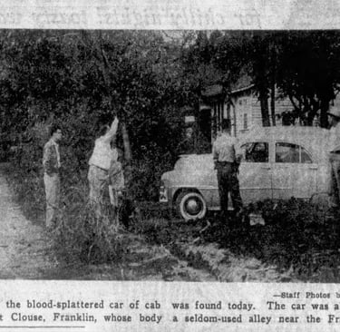 SLAIN CABBIE'S BODY FOUND - Slashed In Ditch At Franklin: Empty Purse In Abandoned Taxi - Nashville Banner: Thursday, October 18, 1956, Front Page (1)