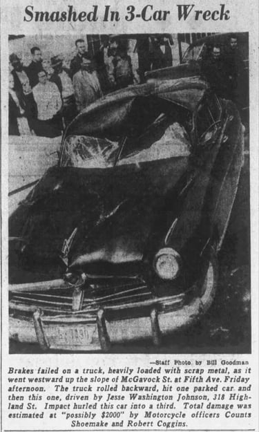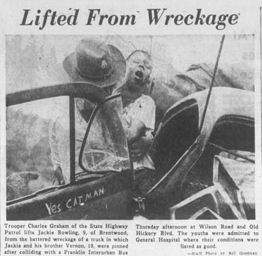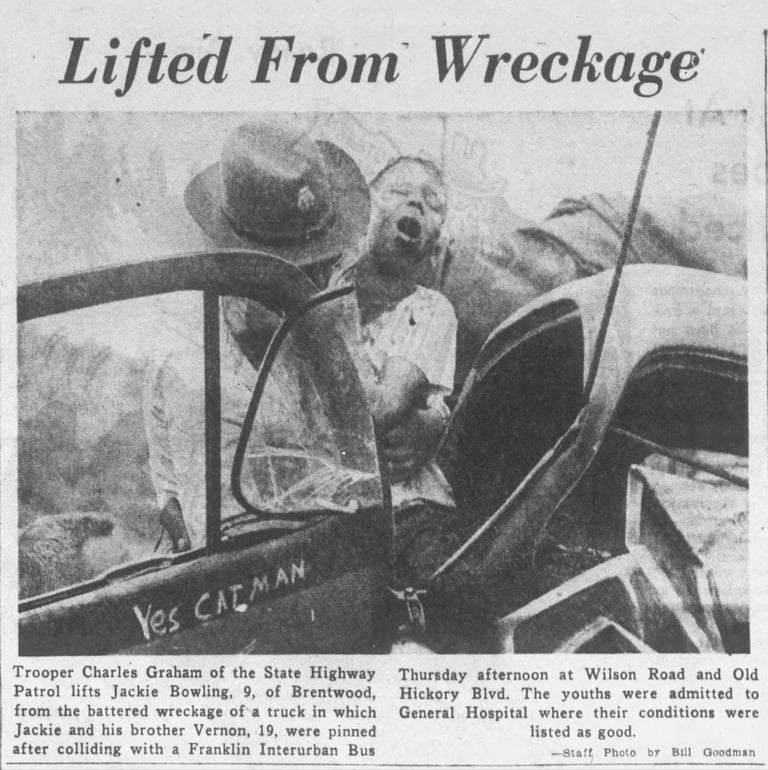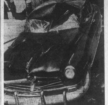 Smashed In 3-Car Wreck - Nashville Banner: Saturday, March 10, 1956, Page 7 Morning Paper & Page 2 Afternoon Paper