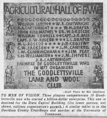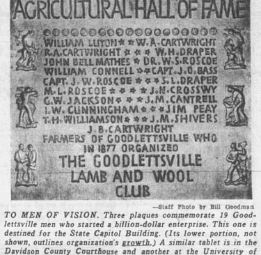 Glimpses Of Goodlettsville - Wool Club Of 19 Launches Nation's Cooperative Movement For Farmers: To Men Of Vision - Nashville Banner: Tuesday, May 1, 1956, Page 23