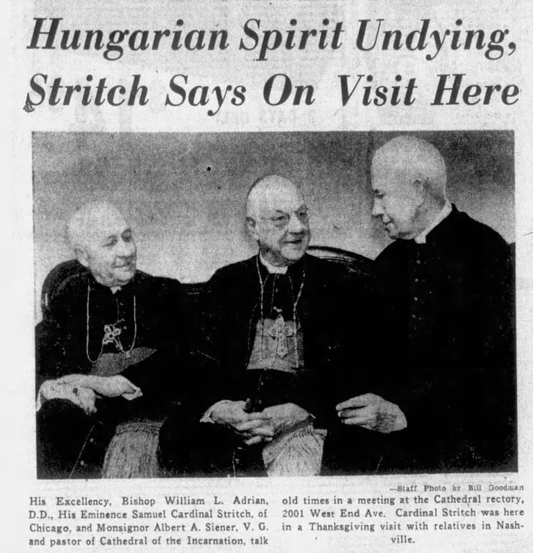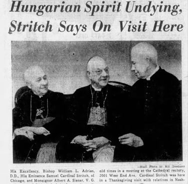 Hungarian Spirit Undying Stritch Says On Visit Here - Nashville Banner: Friday, November 23, 1956, Front Page (1) & Saturday, November 24, 1956, Page 5
