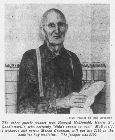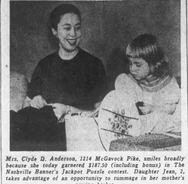 Young Housewife, Widower Split $300 Banner Puzzle Jackpot - Nashville Banner: Friday, March 23, 1956, Page 14 & Saturday, March 24, 1956, Page 5