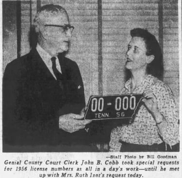 Numerous Auto License Number Notions Benumb Cobb's Noggin - Nashville Banner: Monday, January 30, 1956, Page 16
