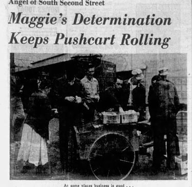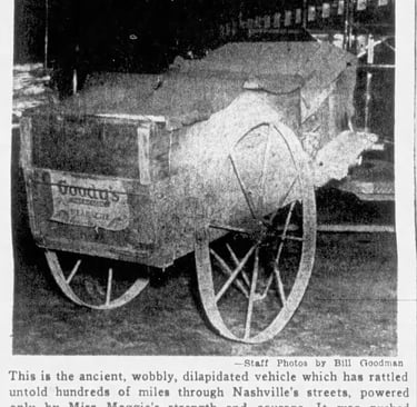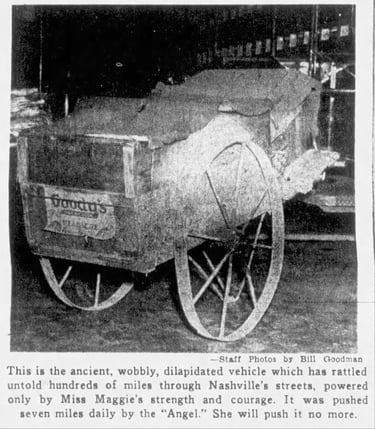 Angel of South Second Street: Maggie's Determination Keeps Pushcart Rolling - Nashville Banner: Monday, November 19, 1956, Page 5