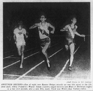 MBA Wins Third Straight Banner Relays : Edges Franklin By Half Point; Eight New Records Set: Another Record - Nashville Banner: Saturday, April 21, 1956, Page 9