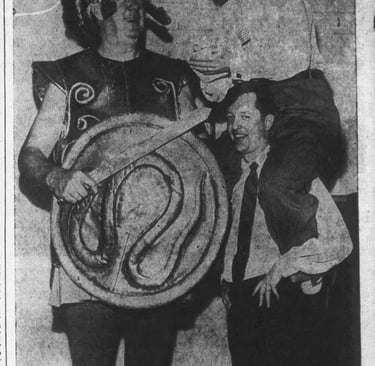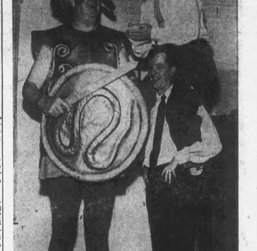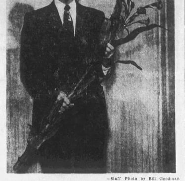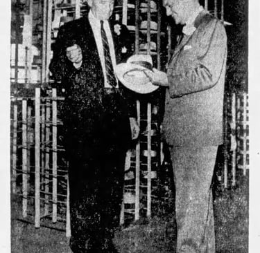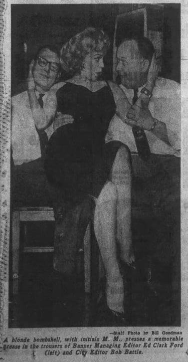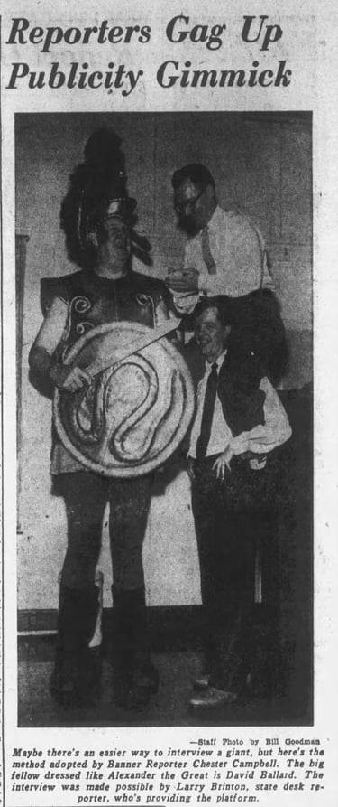 Reporters Gag Up Publicity Gimmick: 7 Foot, 7 Inch Giant In City - Nashville Banner: Wednesday, March 7, 1956, Page 10 Afternoon Paper