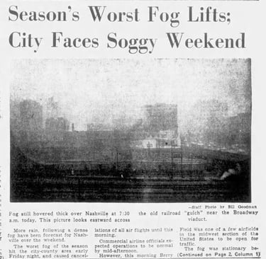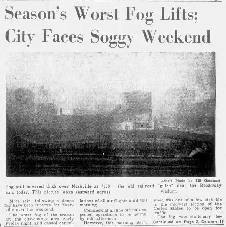 Season's Worst Fog Lifts; City Faces Soggy Weekend - Nashville Banner: Saturday, December 15, 1956, Front Page (1)