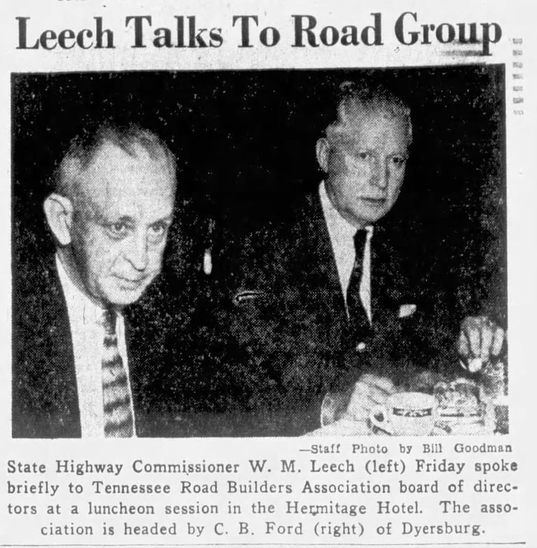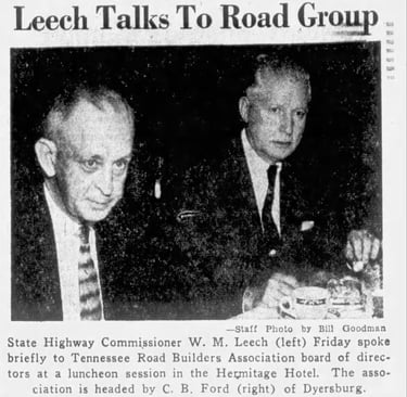Leech Talks To Road Group - Nashville Banner: Saturday, December 22, 1956, Page 3 Morning Paper & Page 11 Afternoon Paper