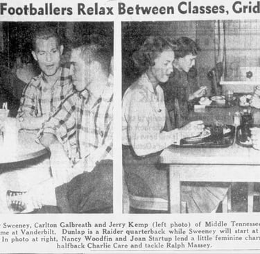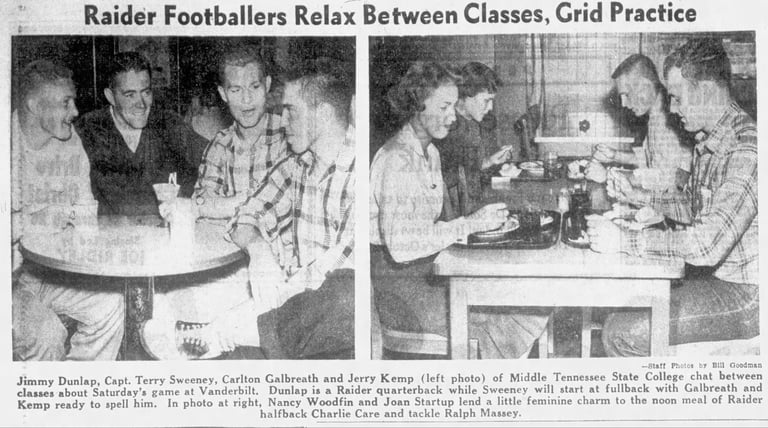Raider Footballers Relax Between Classes, Grid Practice - Nashville Banner: Thursday, October 25, 1956, Page 24