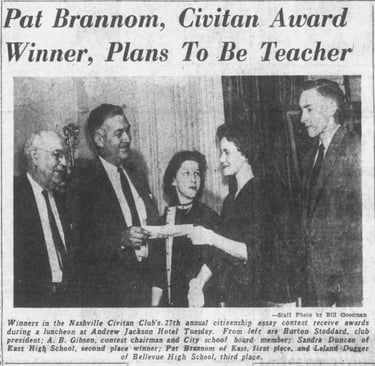 Pat Brannom, Civitan Award Winner, Plans To Be Teacher - Nashville Banner: Wednesday, April 18, 1956, Page 8