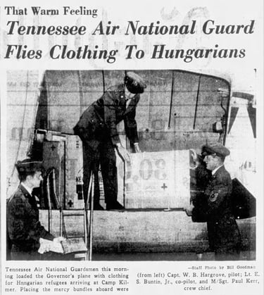 That Warm Feeling: Tennessee Air National Guard Flies Clothing To Hungarian - Nashville Banner: Saturday, December 29, 1956, Front Page (1)