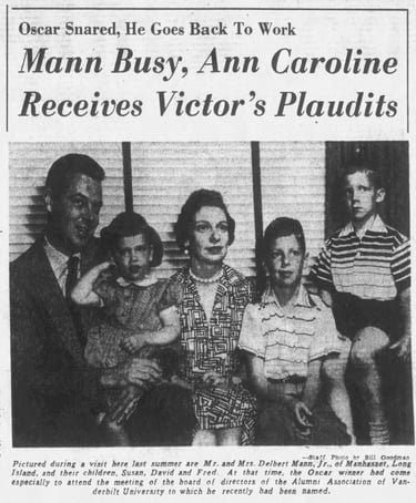 Oscar Snared, He Goes Back To Work: Mann Busy, Ann Caroline Receives Victor's Plaudits - Nashville Banner: Thursday, March 22, 1956, Front Page (1)