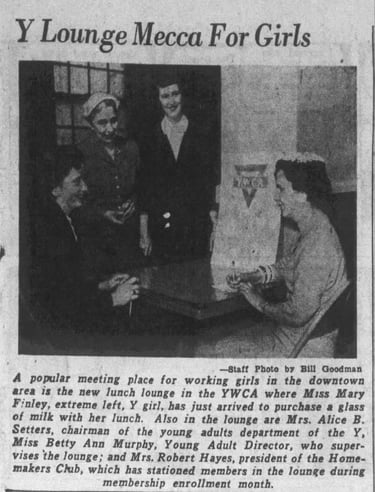 YWCA Lunch Lounge Is New Project: Y Lounge Mecca For Girls - Nashville Banner: Tuesday, May 1, 1956, Page 25