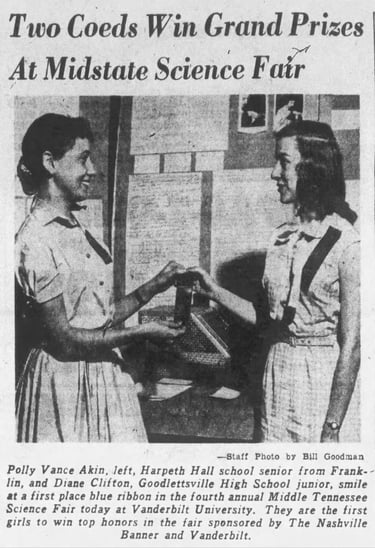 Two Coeds Win Grand Prizes At Midstate Science Fair - Nashville Banner: Friday, April 20, 1956, Page 19