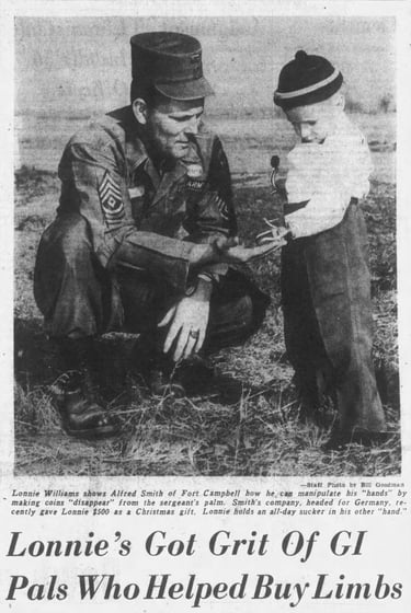 Lonnie's Got Grit Of GI Pals Who Helped Buy Limbs - Nashville Banner: Friday, January 6, 1956, Front Page (1)