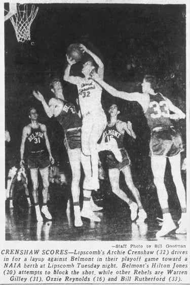 Only Two Games From NAIA Tourney After Beating Belmont - Bisons Seeking First National Bid: Crenshaw Scores - Nashville Banner: Wednesday, February 22, 1956, Page 21