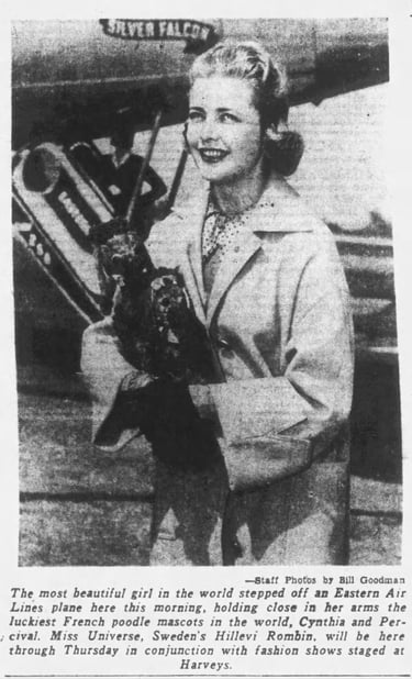 Wow ! Zowie ! Ooh La La ! Miss Universe's In Town - Nashville Banner: Wednesday, April 25, 1956, Front Page (1)
