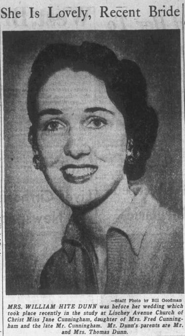 She Is Lovely, Recent Bride: Mrs. William Hite Dunn - Nashville Banner: Wednesday, January 25, 1956, Page 5