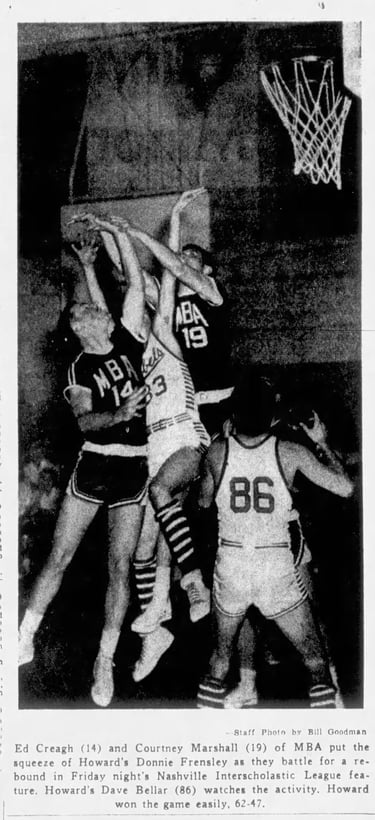 Howard Gets Inside Track For Polio Games Berth: Chances Are Better After Beating MBA - Bellevue, West Extend Streaks - Nashville Banner: Saturday, December 8, 1956, Page 8