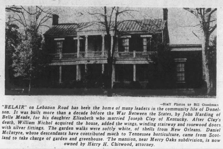 Glimpses Of Donelson : The Booming Community: Financial Giant Of 'Belair' Bought Site, Made Nashville 'Capital City' - Nashville Banner: Thursday, April 26, 1956, Page 17