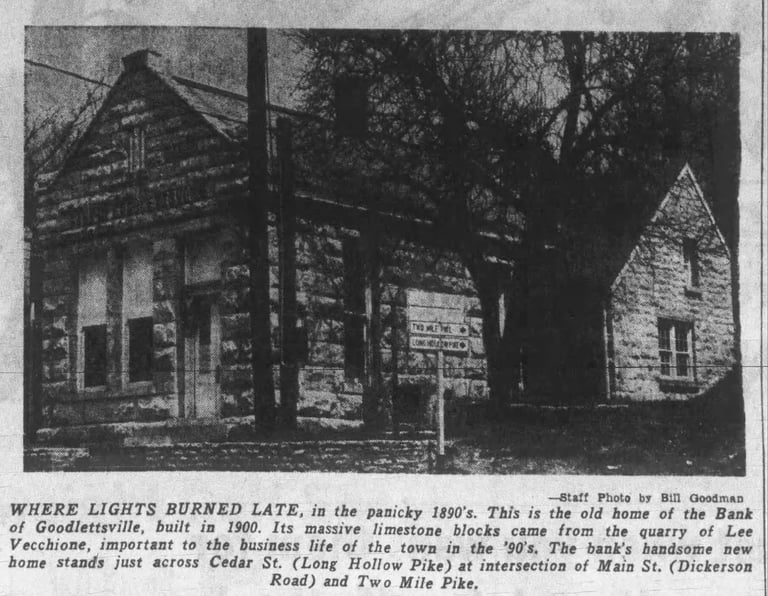 Glimpses Of Goodlettsville - Bank Remains Community Bulwark Despite Bandits And Panic Times: Where Lights Burned Late - Nashville Banner: Wednesday, May 2, 1956, Page 5