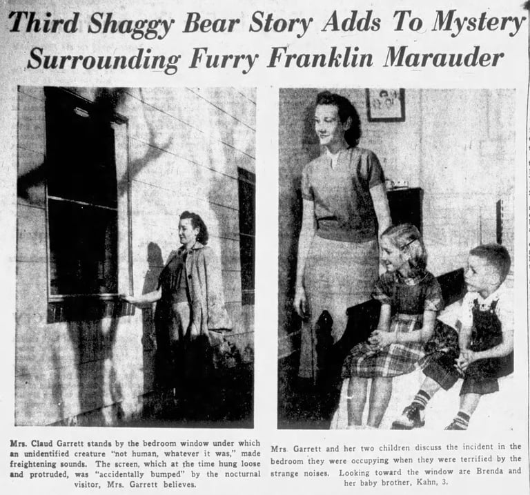 Third Shaggy Bear Story Add To Mystery Surrounding Furry Franklin Marauder - Nashville Banner: Saturday, December 29, 1956, Page 3