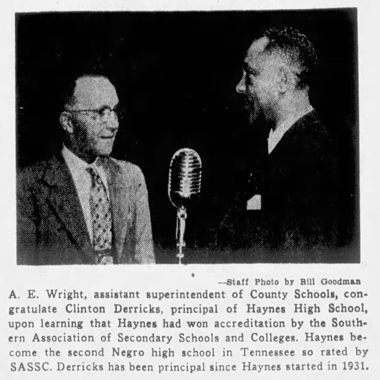 Derricks' Efforts Vital Factor In Haynes Accreditation - Nashville Banner: Saturday, December 8, 1956, Page 5 Morning Paper & Page 14 Afternoon Paper