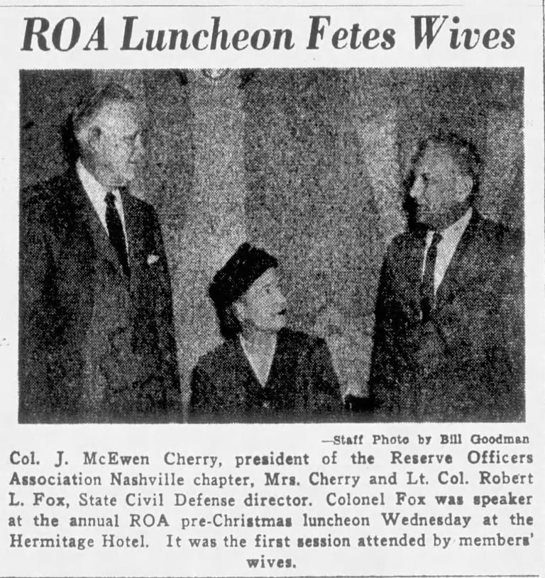 ROA Luncheon Fetes Wives - Nashville Banner: Thursday, December 6, 1956, Page 18 Morning Paper & Page 48 Afternoon Paper