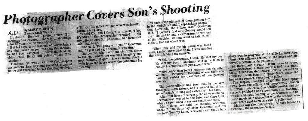 Photographer Covers Son's Shooting: Bill Goodman and son, Mike Goodman - Nashville Banner: September 8, 1980