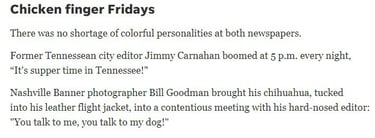 1100 Broadway Home To Life Changing Journalism, Fierce Competition and Wicked Pranks (The Tennessean and The Nashville Banner): Chicken Finger Fridays - The Tennessean, February 11, 2019