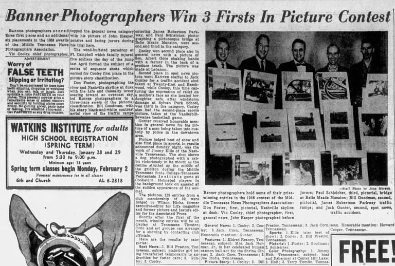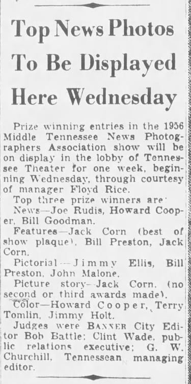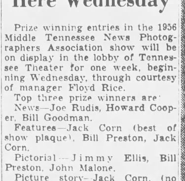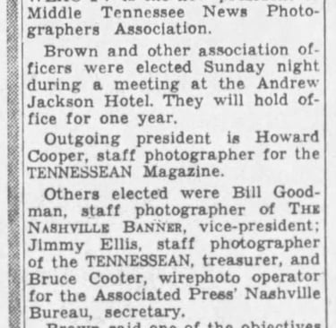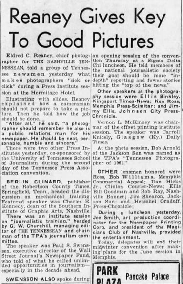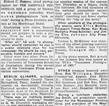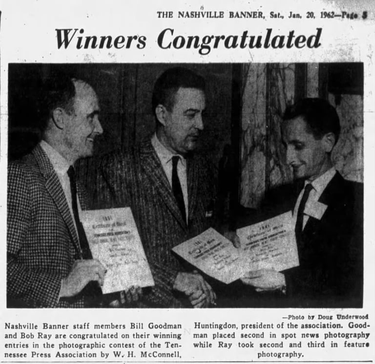Reaney Gives Key To Good Pictures: Other lensmen honored were Bill Goodman and Bob Ray, Nashville Banner - The Tennessean: Saturday Morning, January 20, 1962, Page 5
