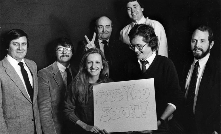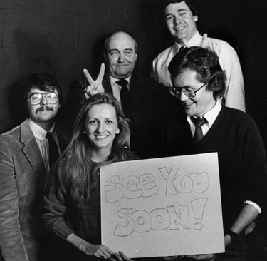 Nashville Banner photographers: Owen Cartwright, John McCormack, Georgia Nell Dukes, Bill Thorpe, and Dave Findlay. Back row: Bill Goodman and Larry McCormack. -Nashville Banner: Circa early 1980's