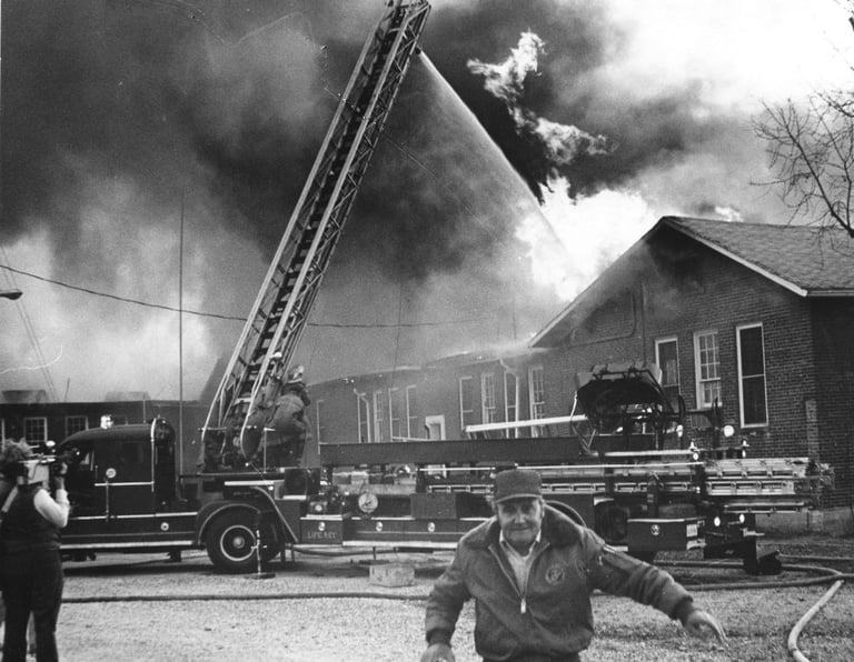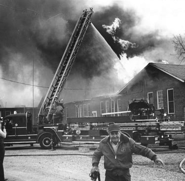 Nashville Banner photographer, Bill Goodman, runs from a fire in the 1960's: Nashville Banner Archives - Special Collection