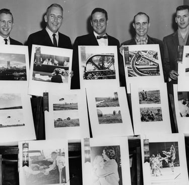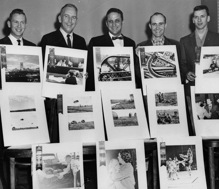January 26, 1959 - Banner photographers hold some of their prize winning entries in the 1958 contest of Middle Tennessee News Photographers Association: Don Foster, Vic Cooley, Paul Schleicher, My Grandfather - Bill Goodman and Jack Gunter. - Nashville Banner