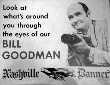 As a lensmen he specialized in aerial photos & police action pictures. Labeled as a courageous photojournalist, he never wavered in the face of dangerous assignments. Throughout his newspaper career he covered fires, accidents, many crime scenes, shootings (including the shooting of his own son, Berry Hill Police Officer, Mike Goodman), Nashville’s race riots in the 1950’s, strikes, Civil Rights demonstrations in the 1960’s & political controversies. He was also responsible for photographing all presidents from 1965 all the way up to the George H.W. Bush Administration & more.