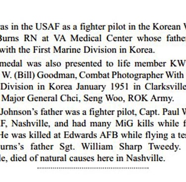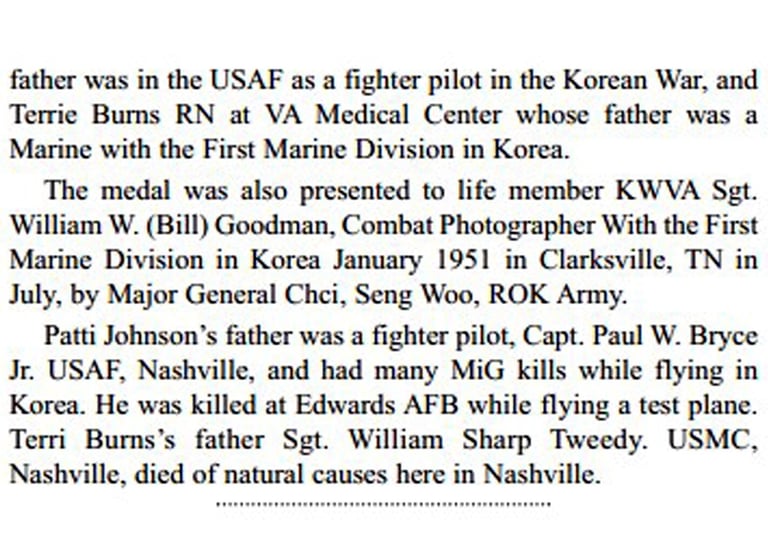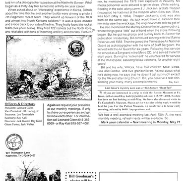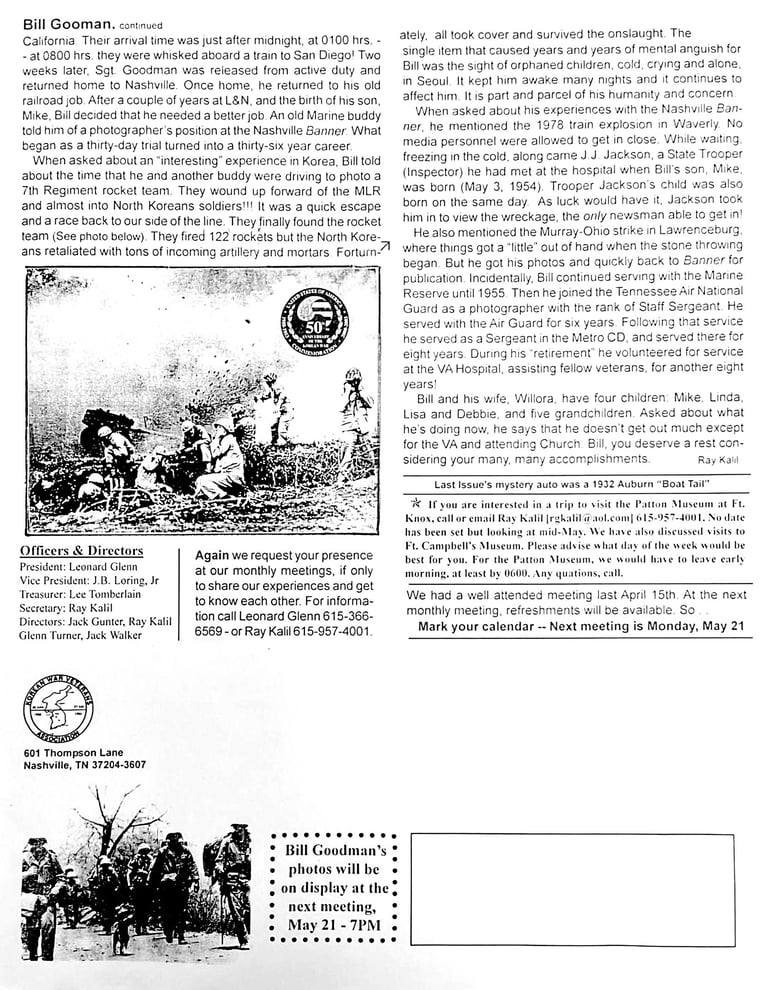 KWVA Newsletter: Korean War Veterans Association, Nashville & Middle Tennessee Chapter 86, May-June 2012, Back Page 2 Continued - Profile: Bill Goodman