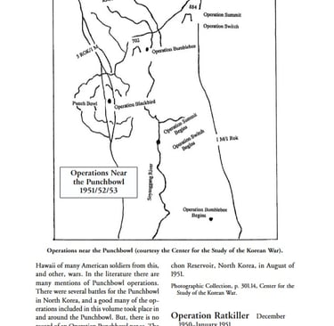 Book - "Combat Operations of the Korean War: Ground, Air, Sea, Special and Covert"- By: Paul M. Edwards - Published in 2009 - Page 69 Ground Operations refers to Operation Punchbowl & references my grandfather, Bill Goodman & a photograph taken by him. (Note - the excerpt begins on Page 68 entitled Operation Punchbowl 1951/52/53: During the Korean War there was a great deal of activity in an area known as the Punchbowl. Also, the Punchbowl is the final home in Hawaii of may American soldiers from this, and other wars.)