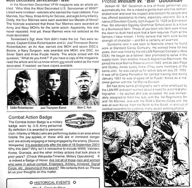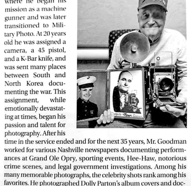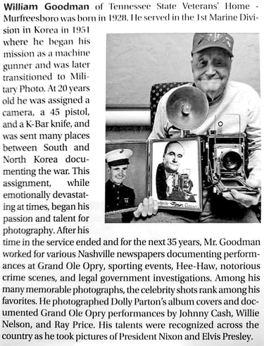 Sgt. William W. "Bill" Goodman - 1st Marine Division - Combat Photographer - Tennessee State Veteran's Home Newsletter Article - Circa 2022