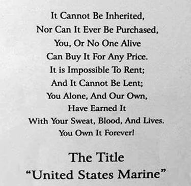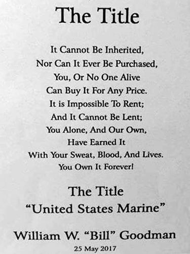 The Title "United States Marine" presented to Sgt. William W. "Bill" Goodman - 1st Marine Division - Combat Photographer on May 25, 2017