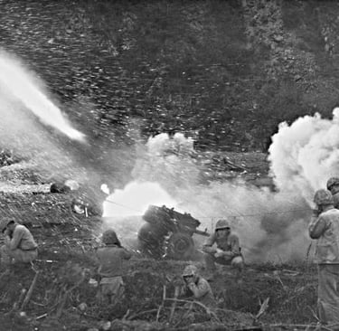 Photograph taken by my grandfather, 1st Marine Combat Photographer, Sgt. William W. (Bill) Goodman, of Marine 4.5 rocket crew in action during Operation Punchbowl near the Hwachon Reservoir in North Korea during August 1951 as referenced in the book, "Combat Operations of the Korean War: Ground, Air, Sea, Special and Covert", Ground Operations, Operation Punchbowl, Page 69.
