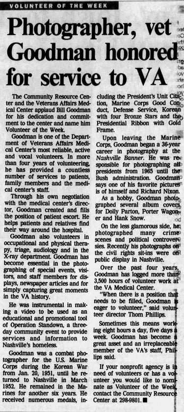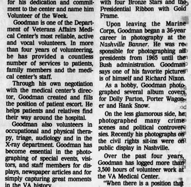Volunteer Of The Week: Photographer, vet Goodman honored for service to VA - The Tennessean: Nashville, Sunday, June 8, 1997, Page 30
