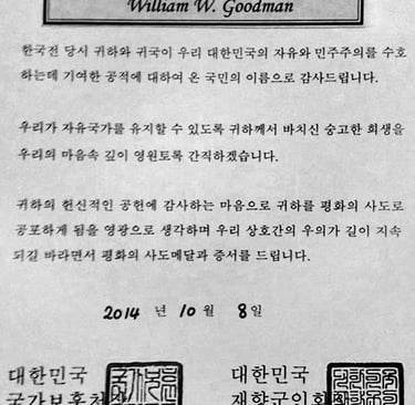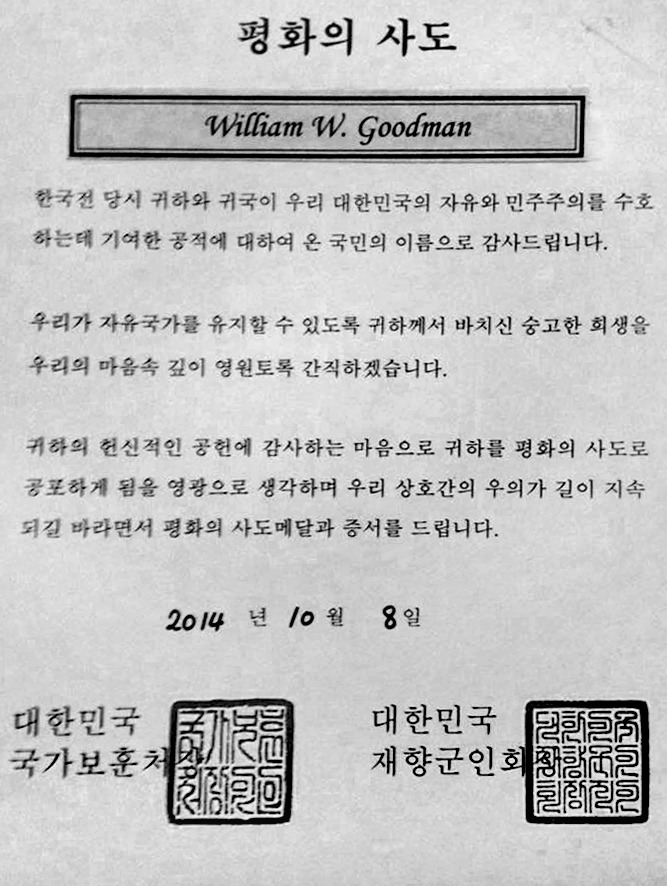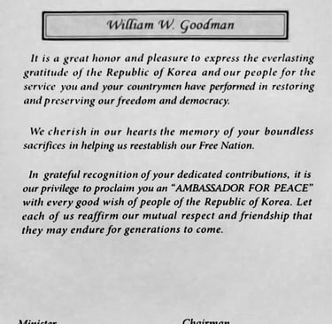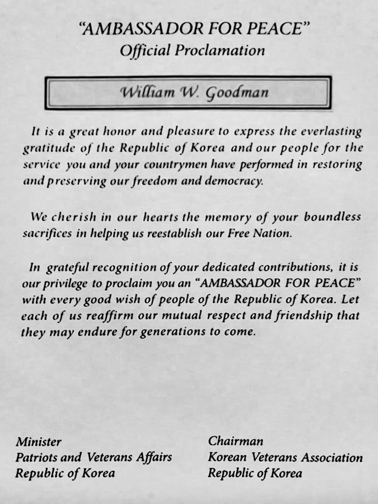 "Ambassador For Peace" Official Proclamation The Republic of Korea - William W. Goodman - October 8, 2014